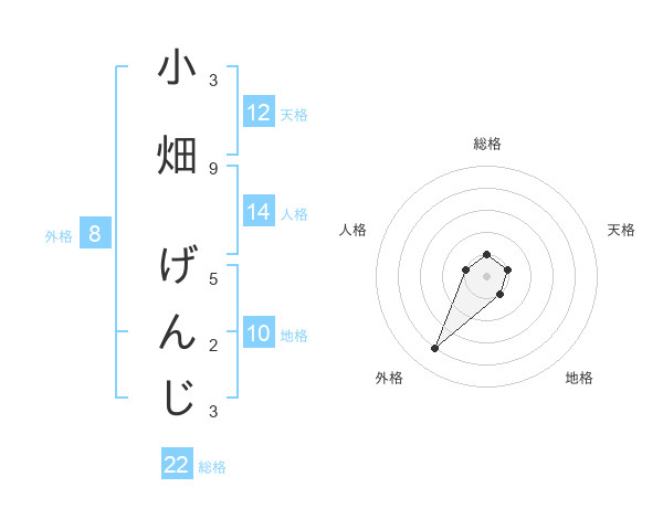 小畑 げんじさんを姓名の画数から五運を鑑定