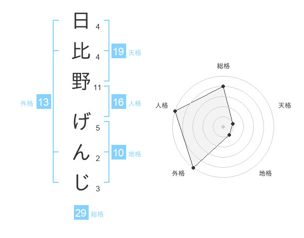 日比野 げんじさんを姓名の画数から五運を鑑定