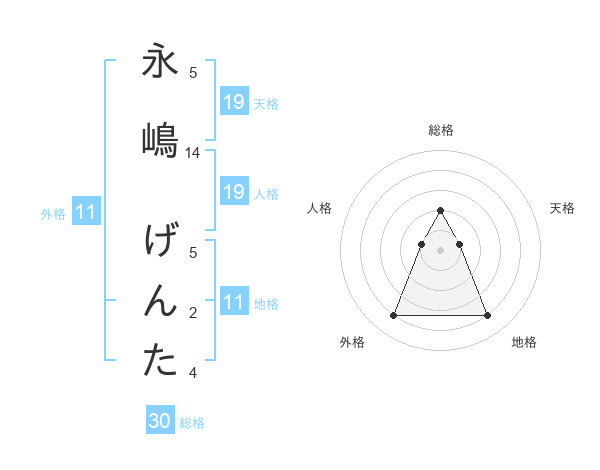永嶋 げんたさんを姓名の画数から五運を鑑定