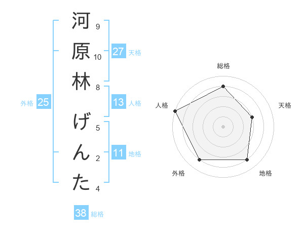 河原林 げんたさんの総格は38画の4点!