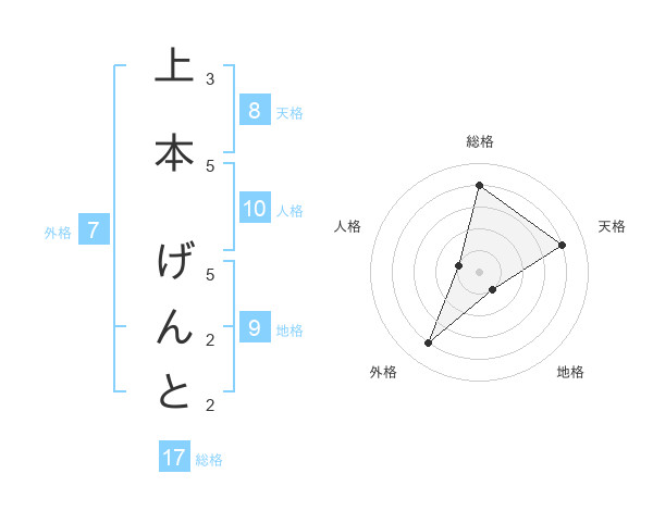 占い結果は姓名判断である以上、良い場合も悪い場合もありますが、決してお名前を誹謗中傷するものでなく、画数の自動計算によって得られたものです。また、本サイトの検索によって得られた鑑定結果で、第三者を誹謗中傷したり名誉を棄損するような行為を禁じます。