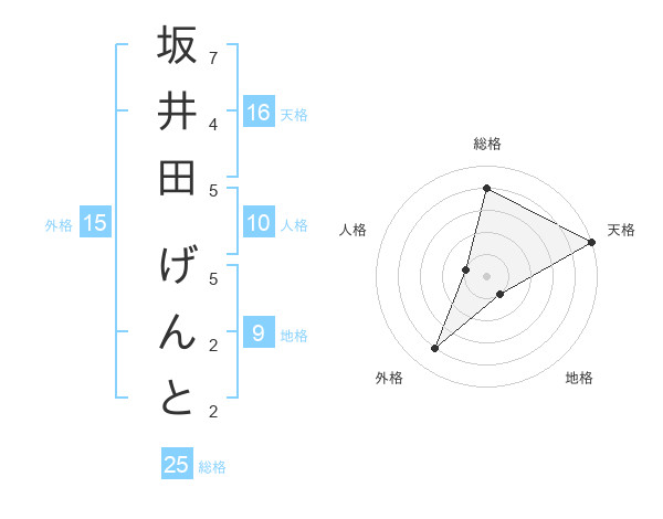 坂井田 げんとさんを姓名の画数から五運を鑑定