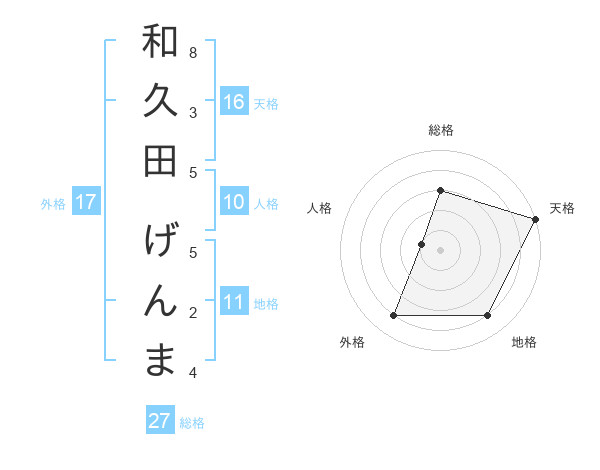 和久田 げんまさんを姓名の画数から五運を鑑定