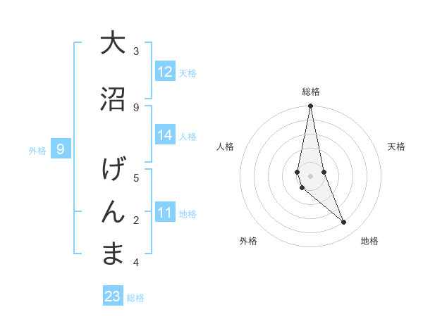 大沼 げんまさんの総格は23画の5点!
