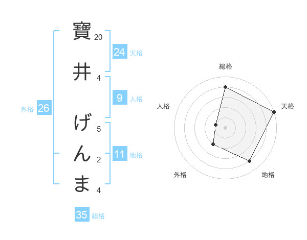 寶井 げんまさんを姓名の画数から五運を鑑定