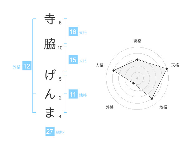 寺脇 げんまさんを姓名の画数から五運を鑑定