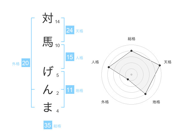 対馬 げんまさんを姓名の画数から五運を鑑定