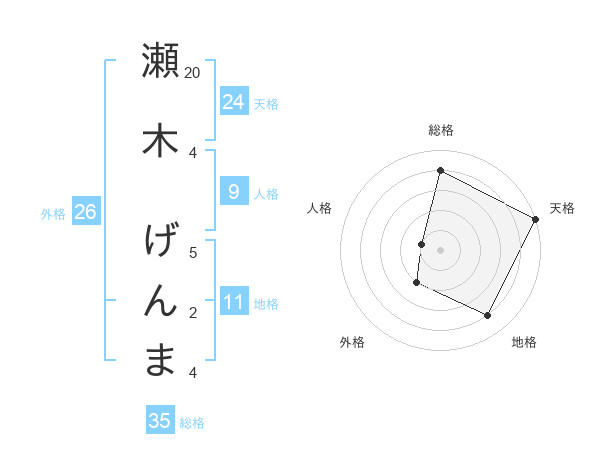 瀬木 げんまさんの総格は35画の4点!