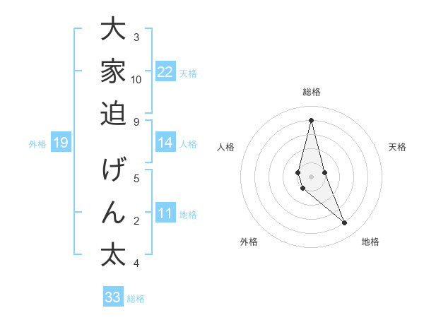 大家迫 げん太さんを姓名の画数から五運を鑑定