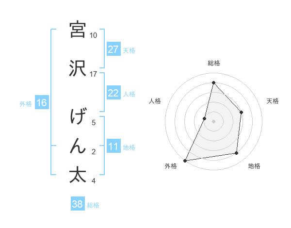 宮沢 げん太さんを姓名の画数から五運を鑑定