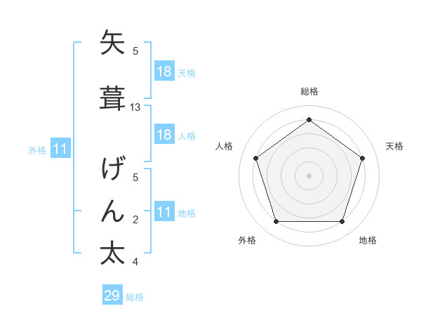 矢葺 げん太さんの総格は29画の4点!