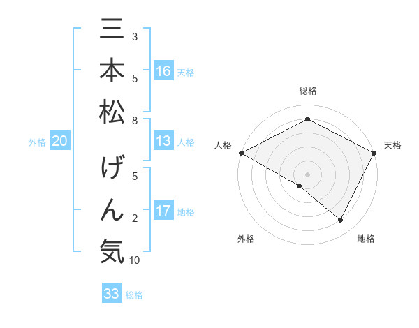 三本松 げん気さんを姓名の画数から五運を鑑定