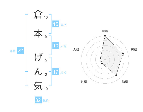 倉本 げん気さんを姓名の画数から五運を鑑定