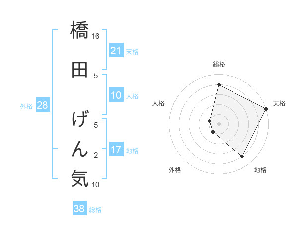 橋田 げん気さんを姓名の画数から五運を鑑定