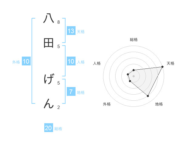 八田 げんさんの天格は13画の5点!