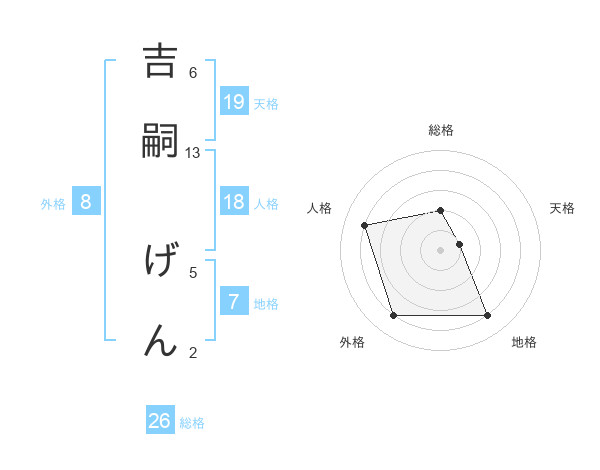 吉嗣 げんさんの総格は26画の2点!