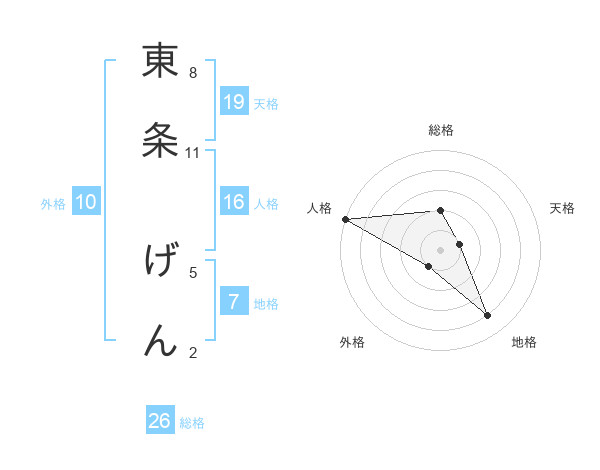 東条 げんさんの総格は26画の2点!