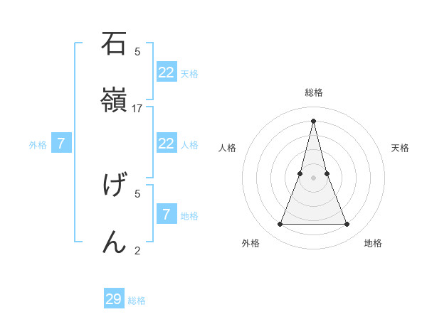 石嶺 げんさんの総格は29画の4点!