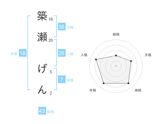 築瀬 げんさんを姓名の画数から五運を鑑定