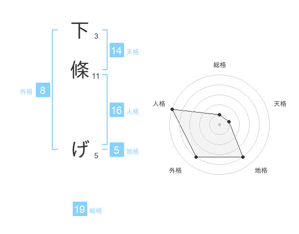 下條 げさんの地格は5画の4点!