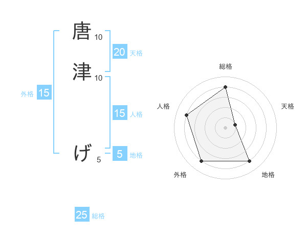 唐津 げさんの総格は25画の4点!