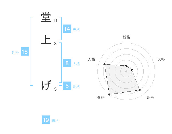 堂上 げさんの地格は5画の4点!