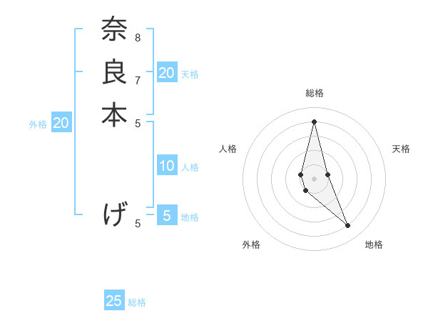 奈良本 げさんの総格は25画の4点!