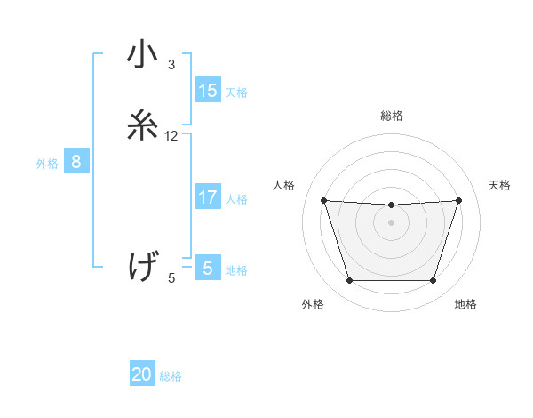 小糸 げさんの天格は15画の4点!