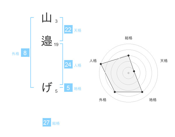 山邉 げさんの外格は8画の4点!