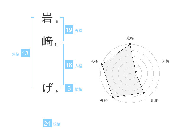 岩﨑 げさんの総格は24画の5点!