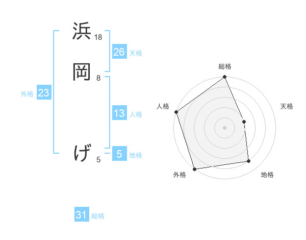 浜岡 げさんの総格は31画の5点!