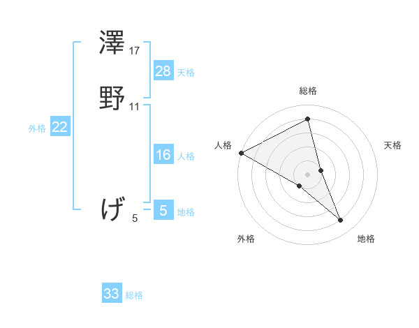 澤野 げさんの総格は33画の4点!