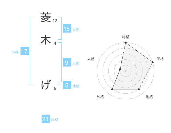 菱木 げさんの地格は5画の4点!