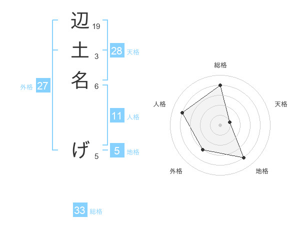 辺土名 げさんの総格は33画の4点!