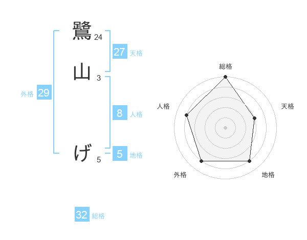 鷺山 げさんの総格は32画の5点!