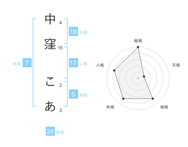 中窪 こあさんの天格は19画の1点!