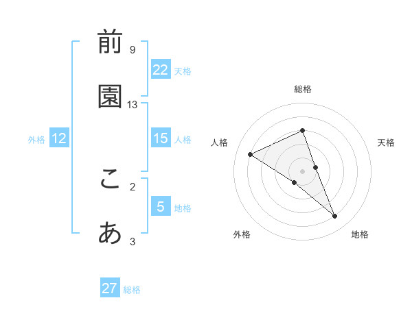 前園 こあさんの総格は27画の3点!