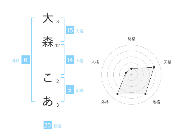 大森 こあさんの外格は6画の4点!