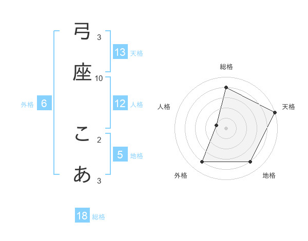弓座 こあさんの天格は13画の5点!