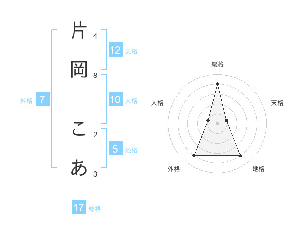 片岡 こあさんの総格は17画の4点!