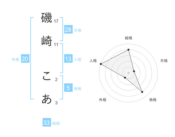 磯崎 こあさんを姓名の画数から五運を鑑定