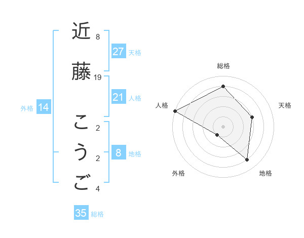 近藤 こうごさんを姓名の画数から五運を鑑定
