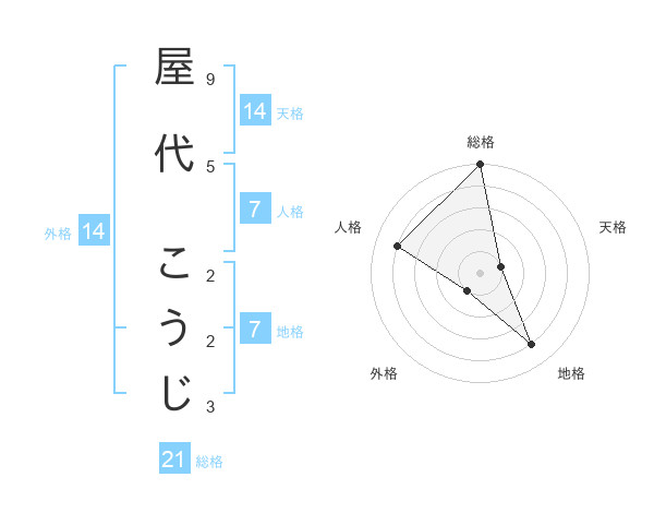 屋代 こうじさんを姓名の画数から五運を鑑定
