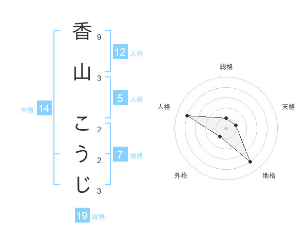 香山 こうじさんの外格は14画の1点!