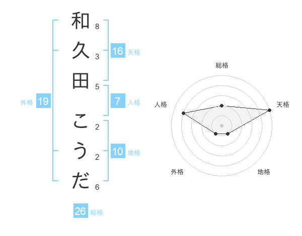 和久田 こうださんの天格は16画の5点!