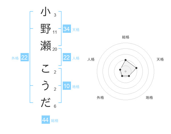 小野瀬 こうださんを姓名の画数から五運を鑑定