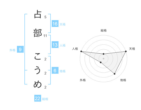 占部 こうめさんの総格は22画の1点!