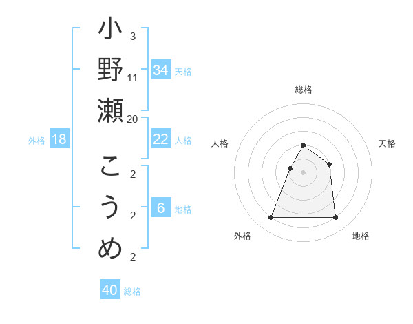 小野瀬 こうめさんを姓名の画数から五運を鑑定