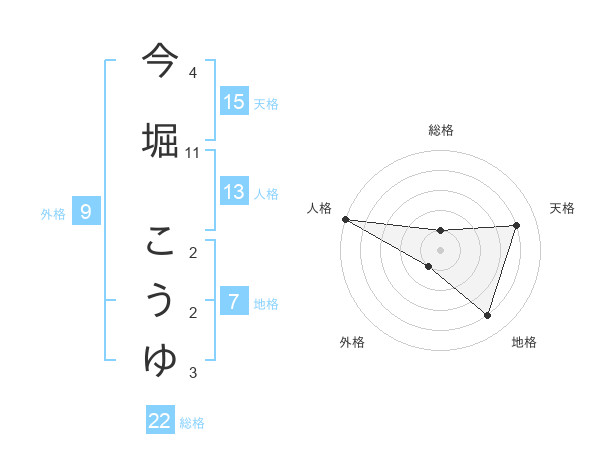 今堀 こうゆさんの総格は22画の1点!