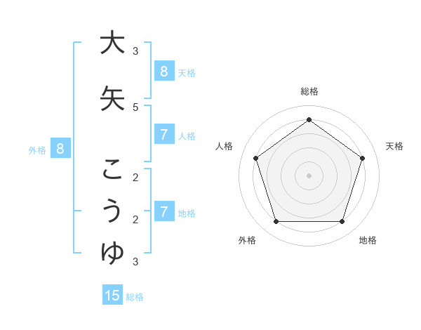 大矢 こうゆさんの天格は8画の4点!